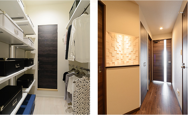 グランディアの設計変更収納・玄関ホール それぞれの暮らしに合わせたちょっとしたアレンジが、 大きな快適を生み出すことがあります。 豊富なアイテムと培った提案力で、ご要望のすべてをカタチに。 住まう方の意見が、いい家づくりのヒントです。