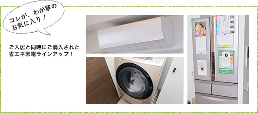 - 「節電のために努力していることは特にないのに、以前の一人暮らしの時より光熱費が安い」「気密性が良く冬はエアコンを全く使わないし、断熱材のおかげか結露も気になりません」と、現在の暮らしが名残惜しい様子も…。しかしよくお話をお聞きすると、奥様は出かける時にはコンセントを抜いたり、家電品も省エネタイプを揃えたりとエコ意識は高いご様子です。