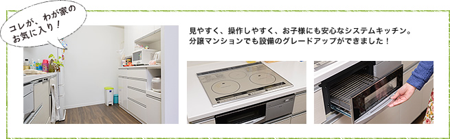 - 「賑やかな家族がいいから4LDKに。しかもリビングからすべての部屋へ行けて、家族が集まりやすいのも良かった」(ご主人)と、やさしいパパの顔がチラリ。奥様は設計変更で、システムキッチンをグレードアップできたのが嬉しかったとか。グリルで、簡単に野菜チップスなどが焼けるのでヘルシーなおやつに最適。お子様に手を取られていても、細やかな安全機能が付いているので安心というお話でした。